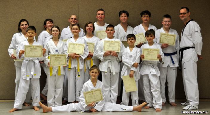 Geschafft - nach 2 Stunden Prüfung konnten sich alle Sportler über ihre neue Graduierung freuen.