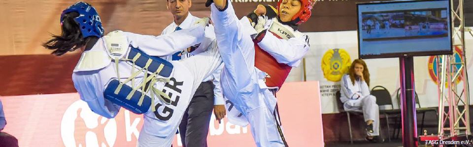 TAE - bedeutet soviel wie stoßen und schlagen mit den Füßen. Das sind Kicks in allen Variationen; in Kopf- oder Bauchhöhe, nach vorn oder hinten, gedreht oder gesprungen, einfach oder doppelt.